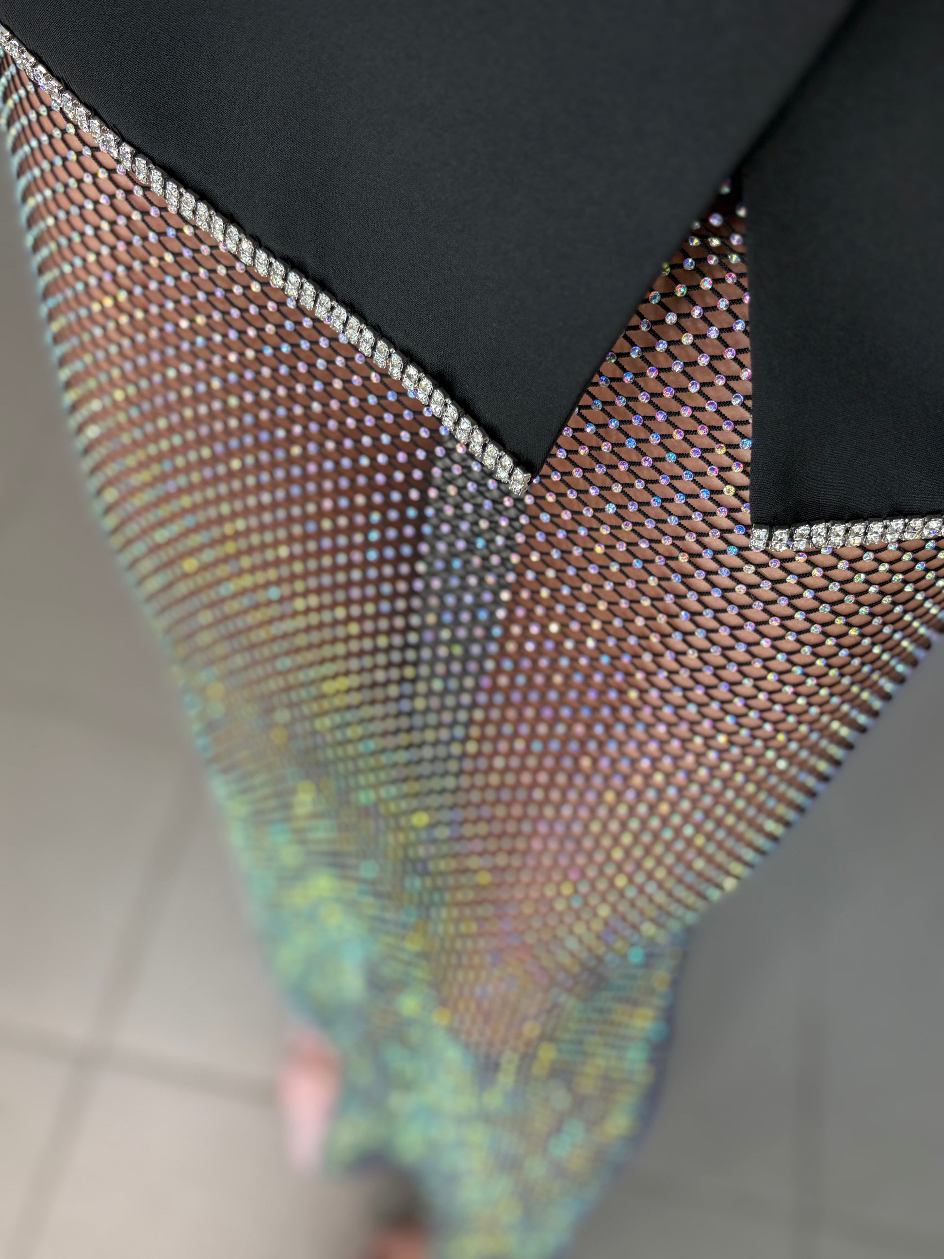 Dviejų dalių kostiumėlis, korsetas ir sijonas, sijonas turi šortukus.