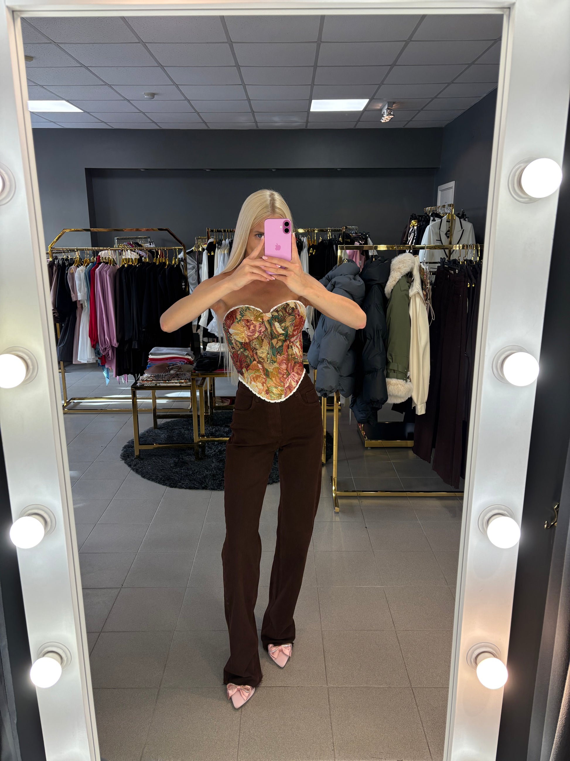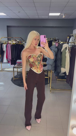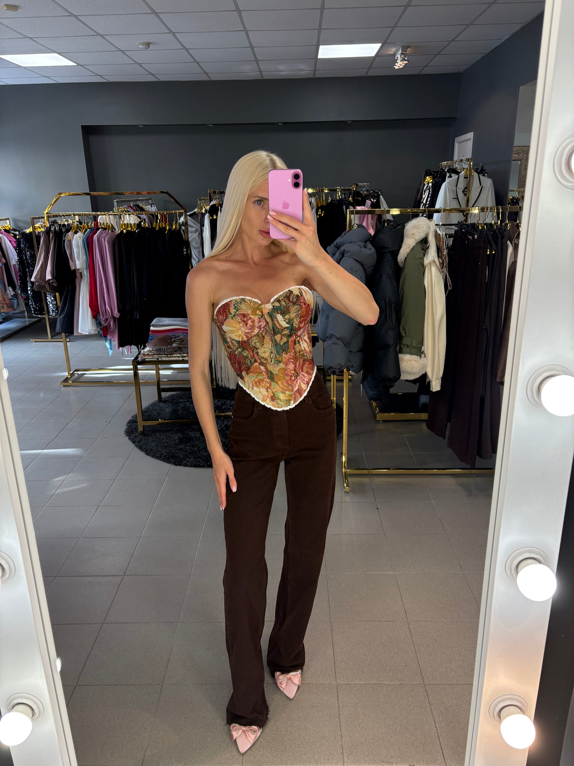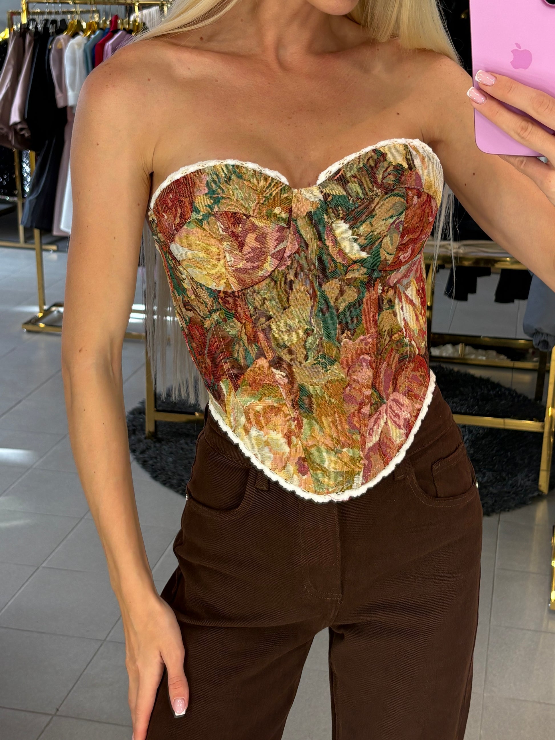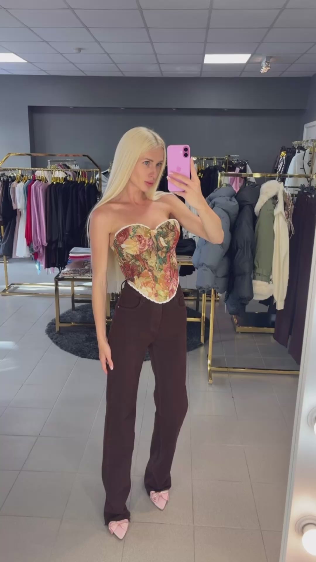 Korsetas gale varstomas raišteliais, kaušeliai su pakietinimu ir turi push up efekta.
