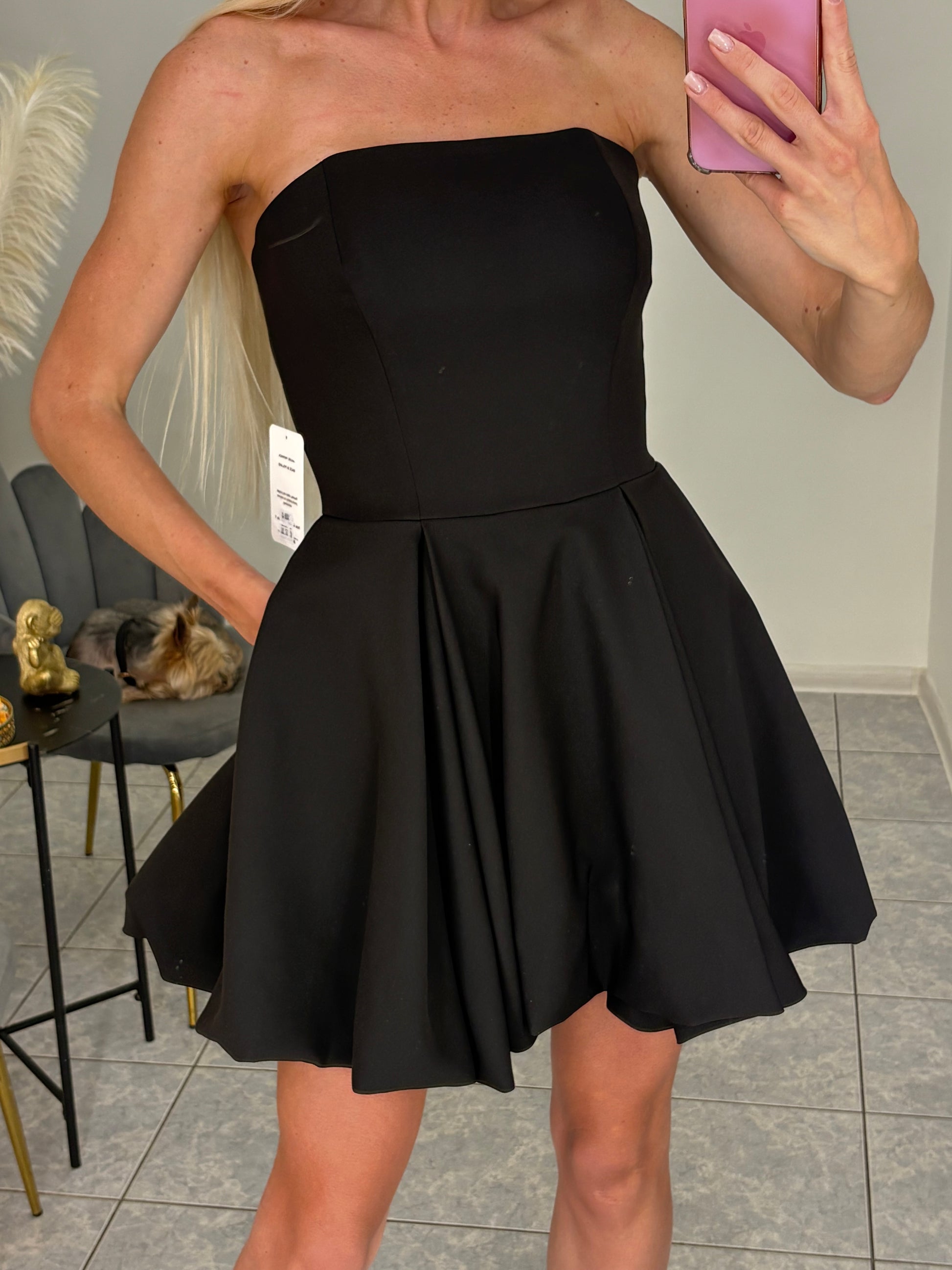 Korsetinė suknelė, nugaroje užtrauktukas, turi kišenes.