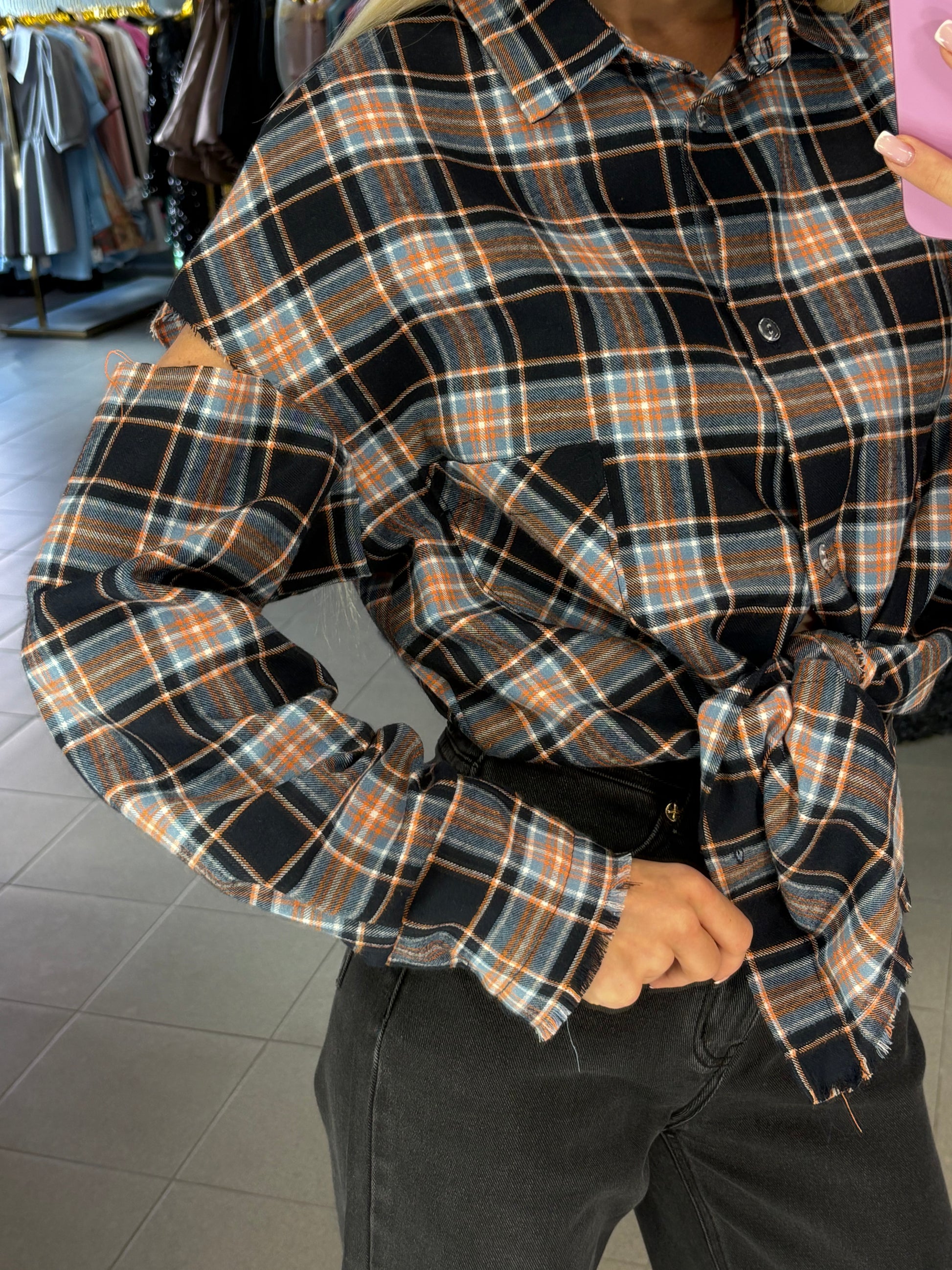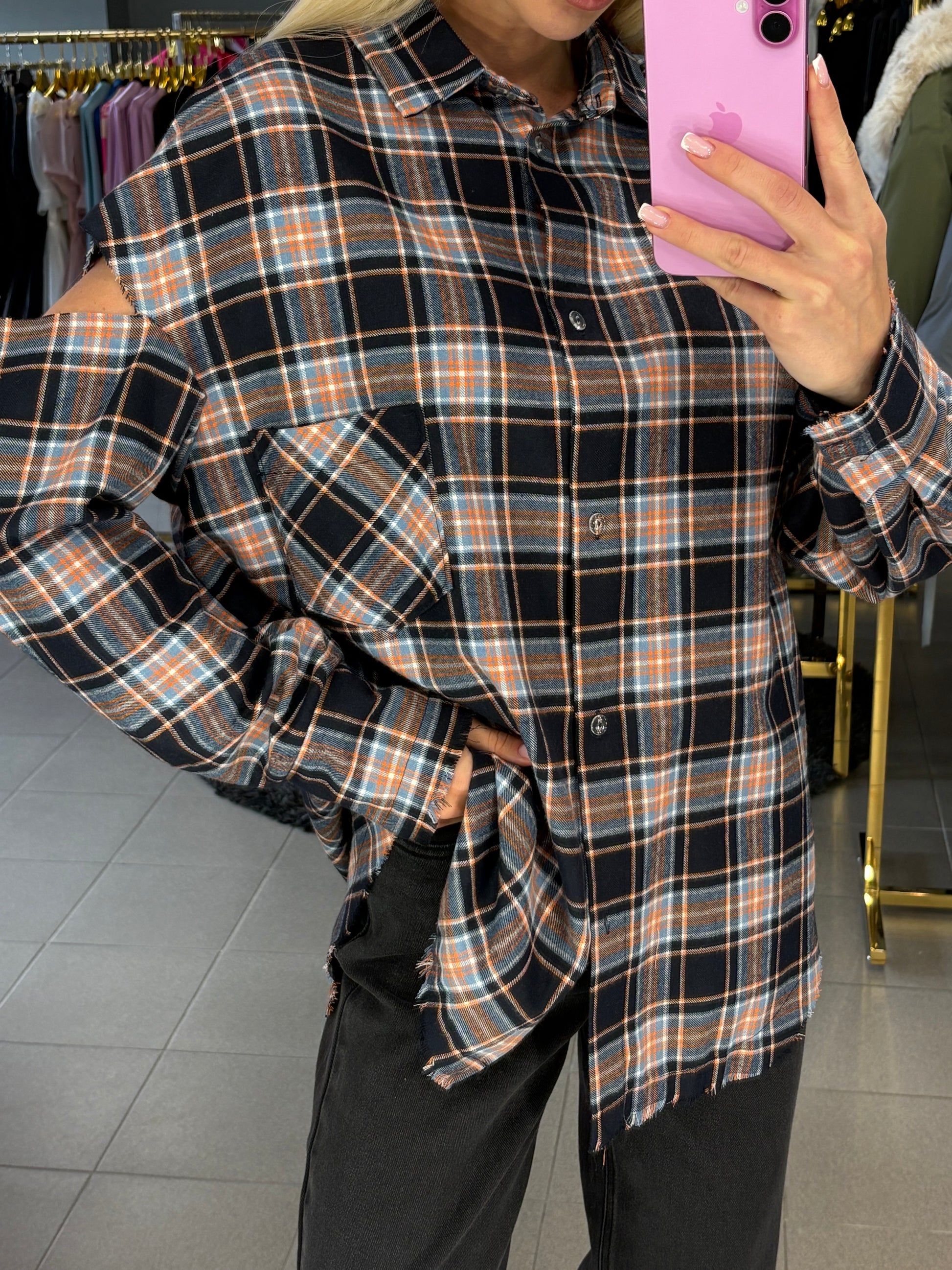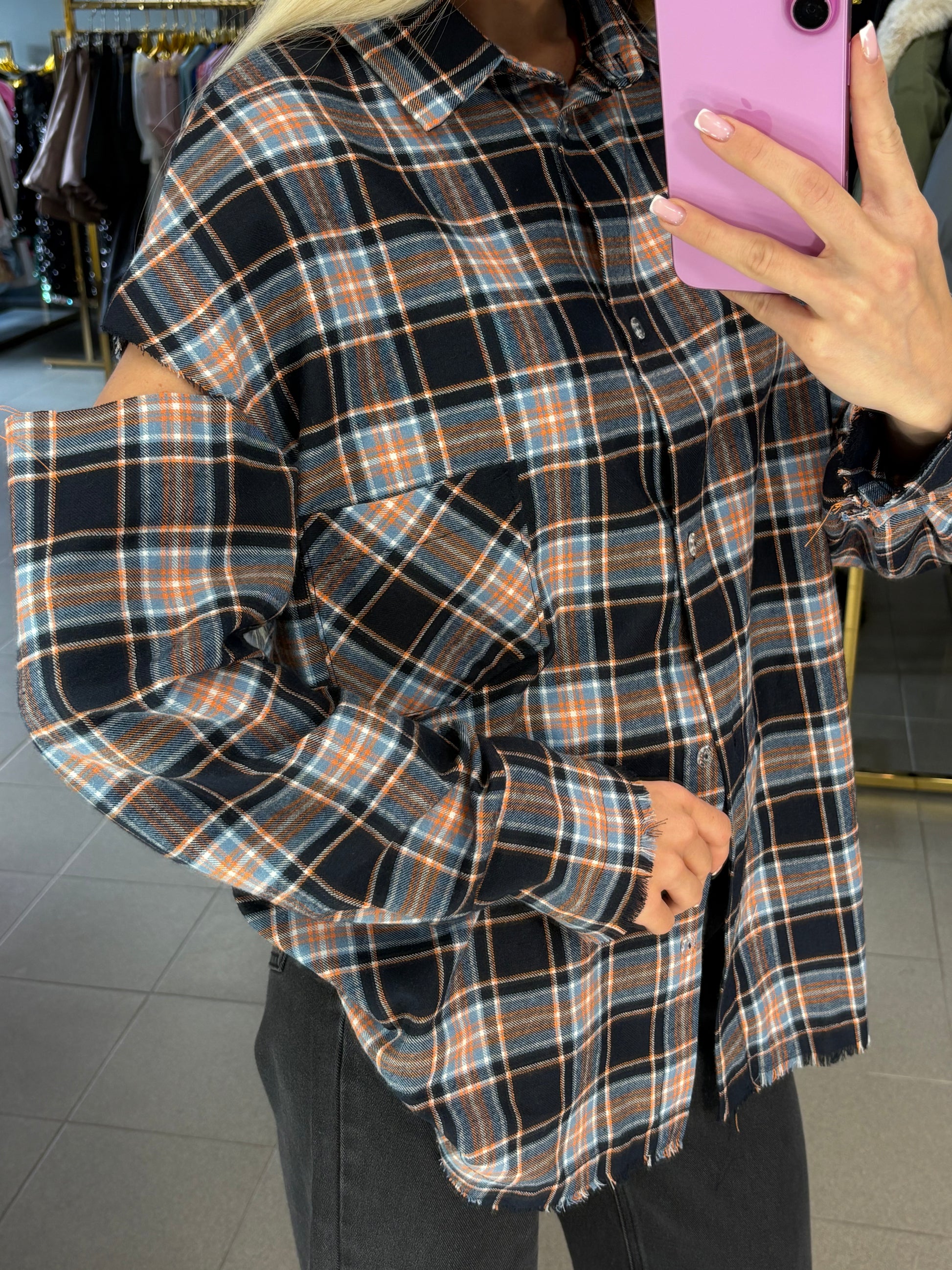 Nebaigtos siūlės efektą turintys marškiniai, puikiai tinkami ir prie tamprių, džinsų ar sijono! Tinkami nuo XS iki L dydžio.