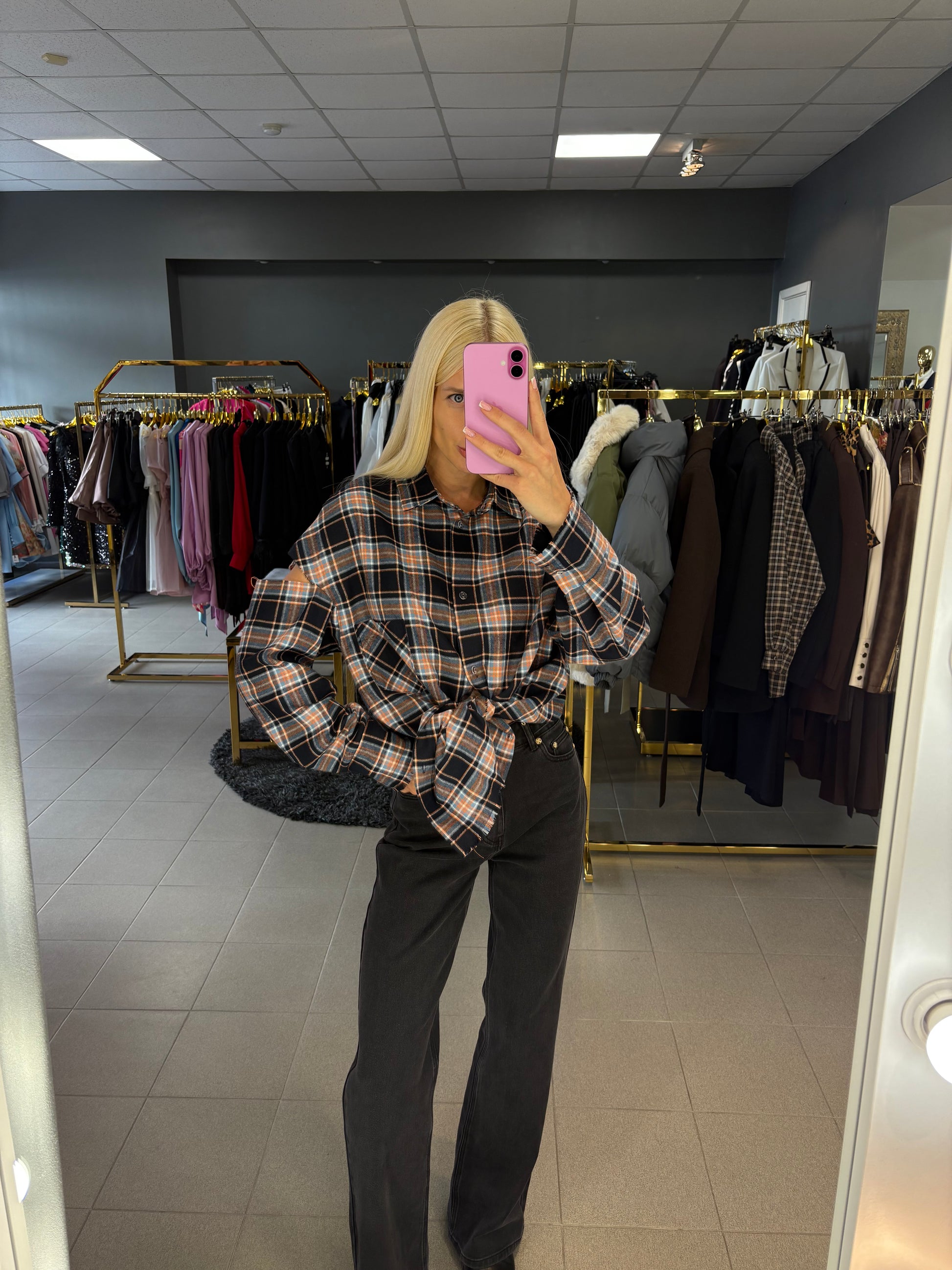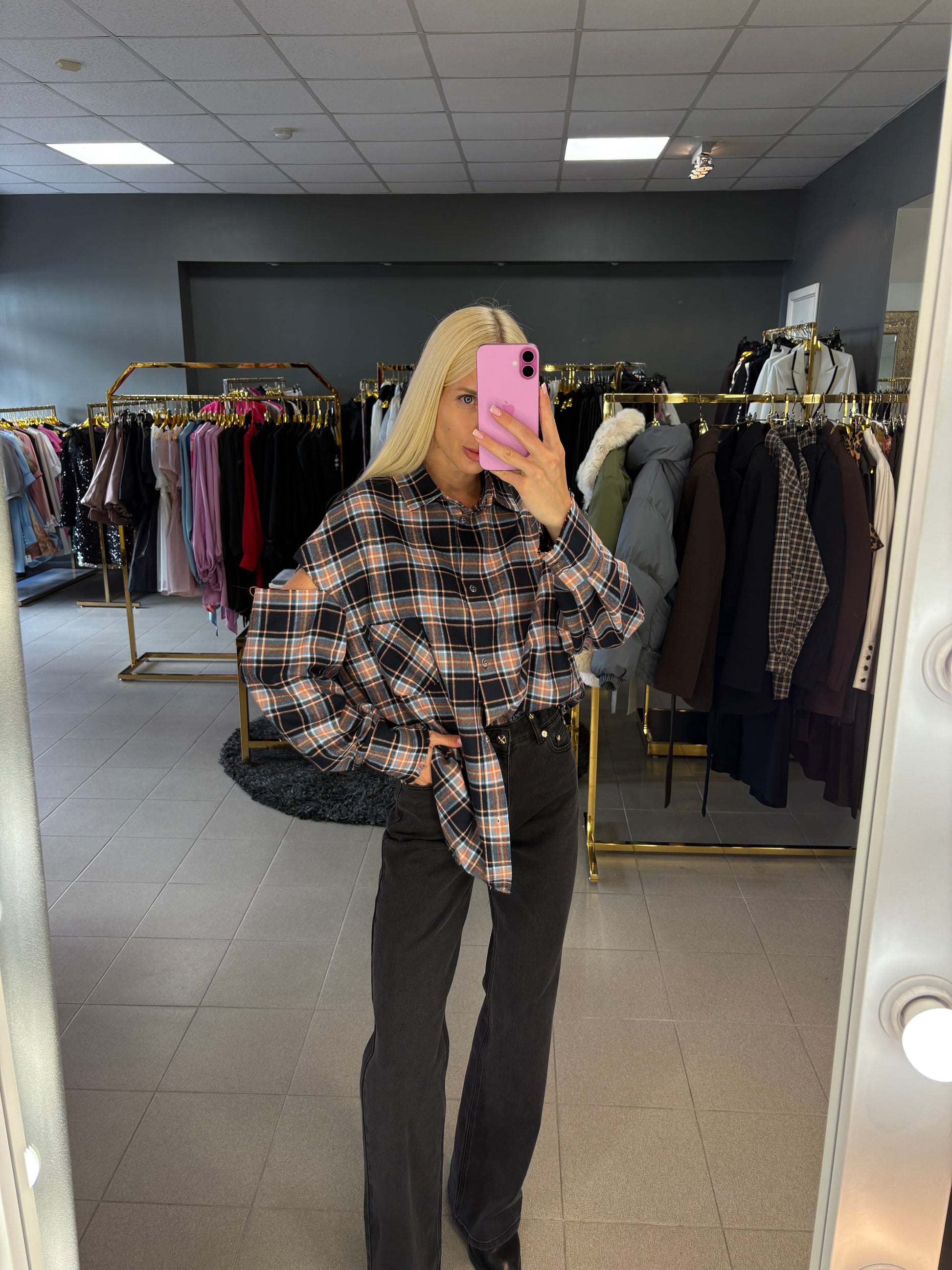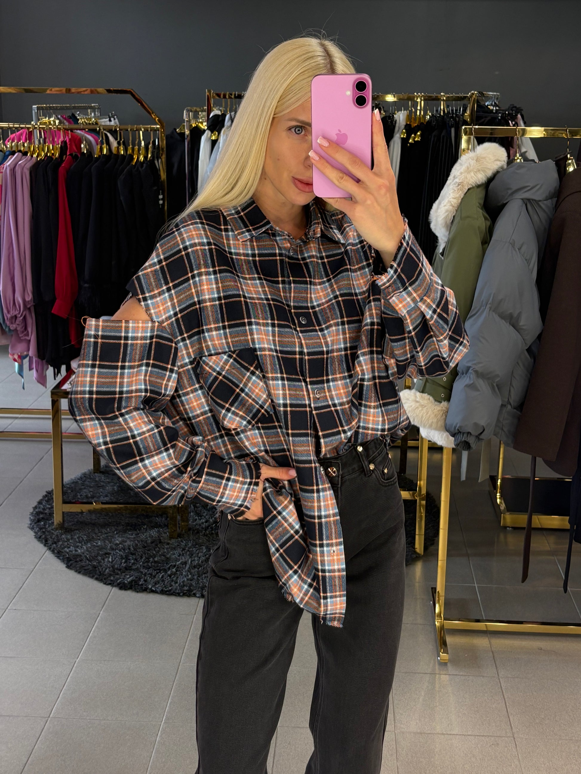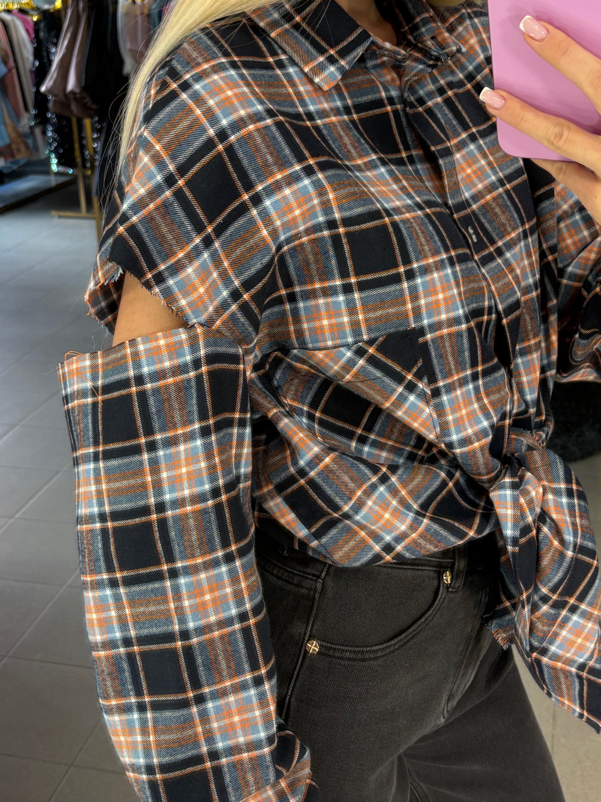 Nebaigtos siūlės efektą turintys marškiniai, puikiai tinkami ir prie tamprių, džinsų ar sijono! Tinkami nuo XS iki L dydžio.