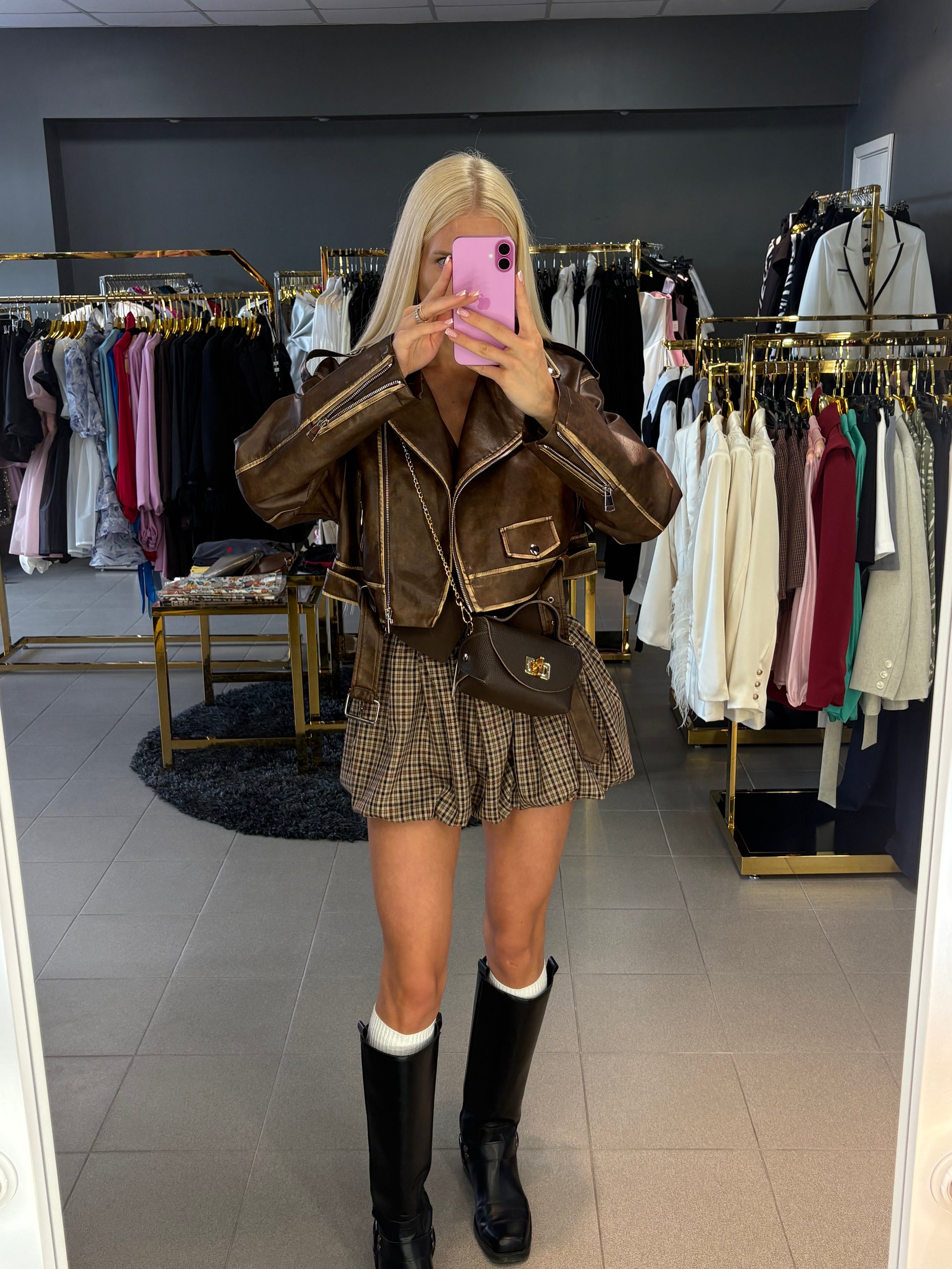 Pūsto modelio sijonas, tinkamas nuo XS iki M dydžio.