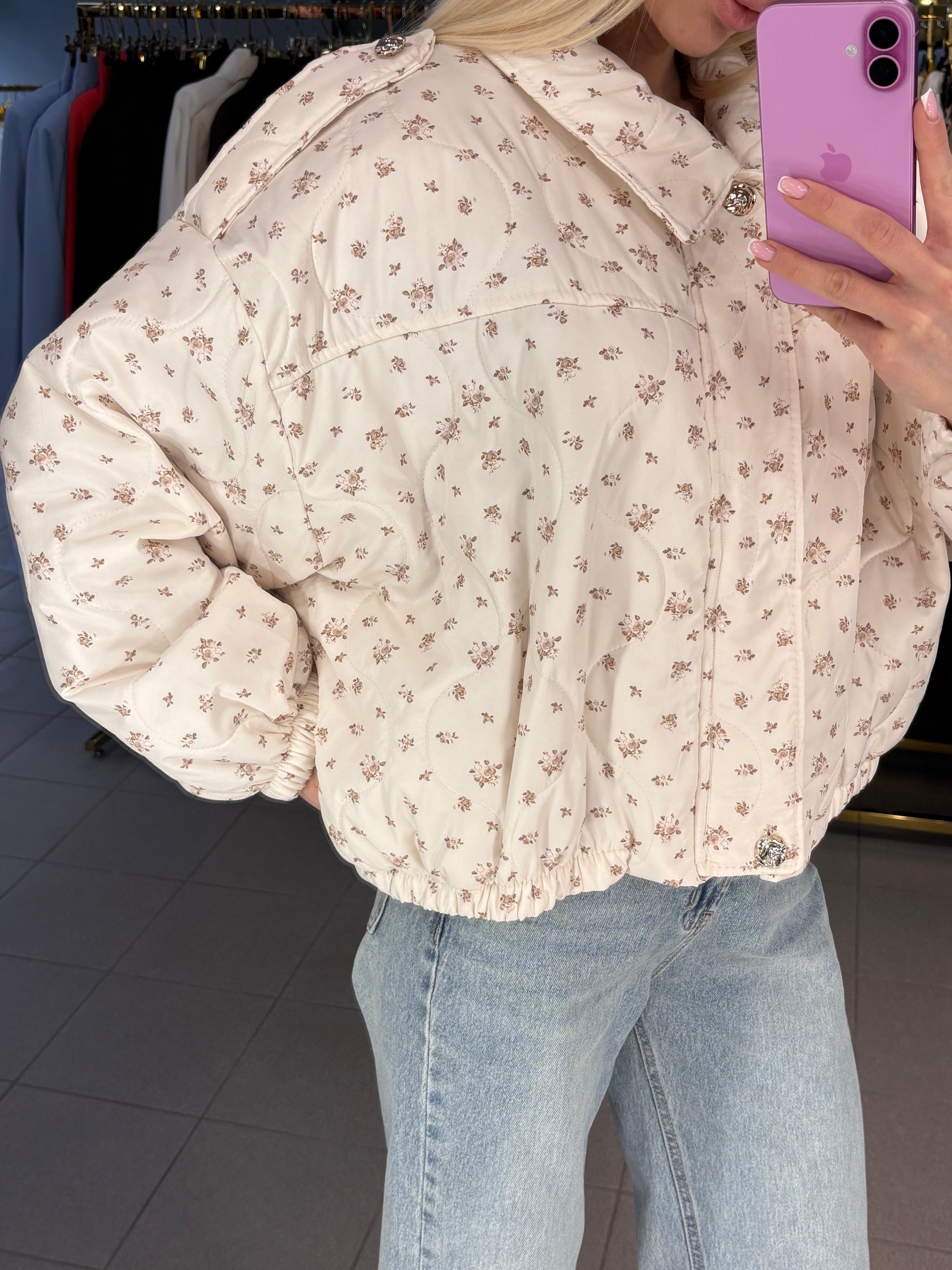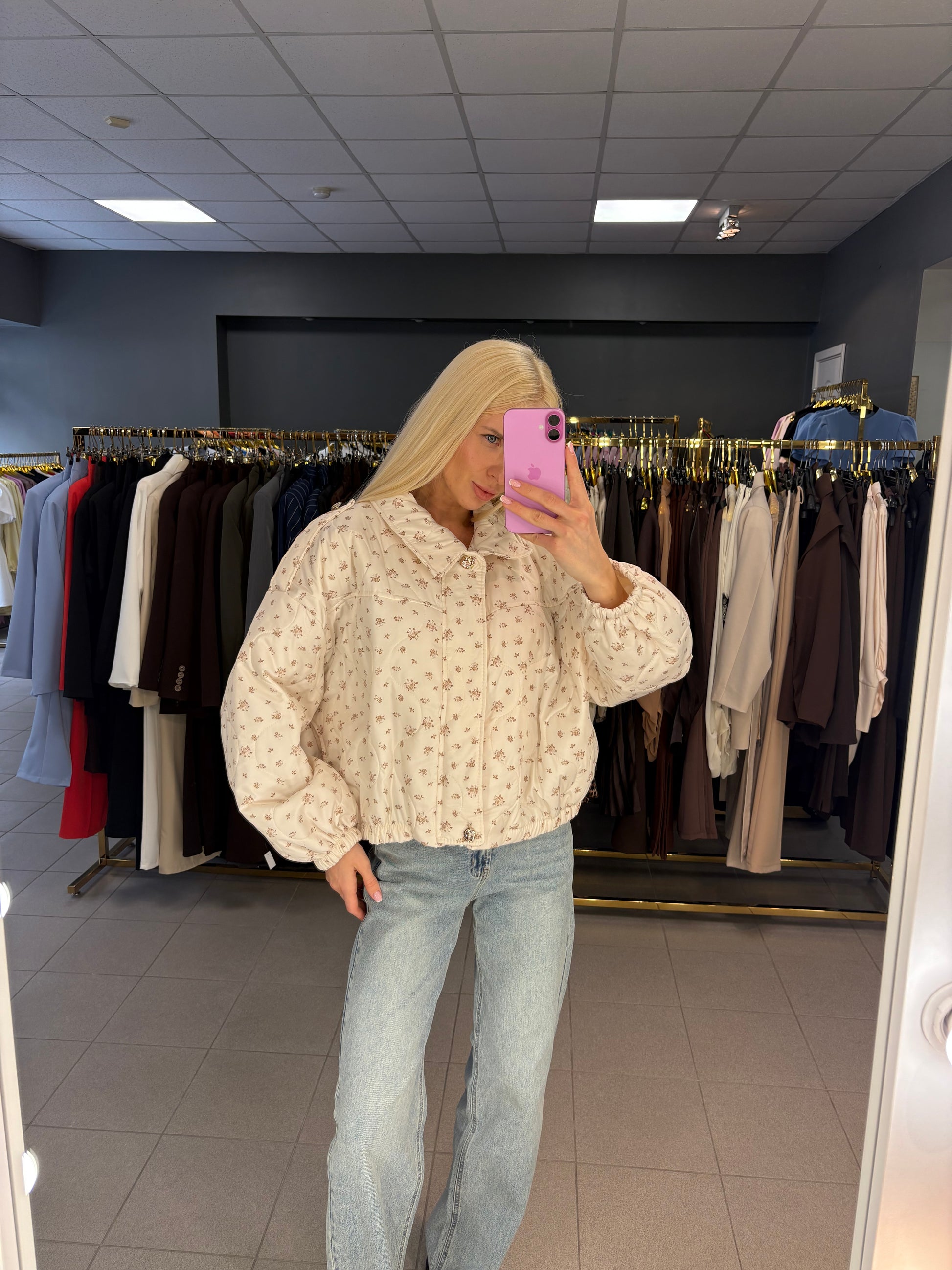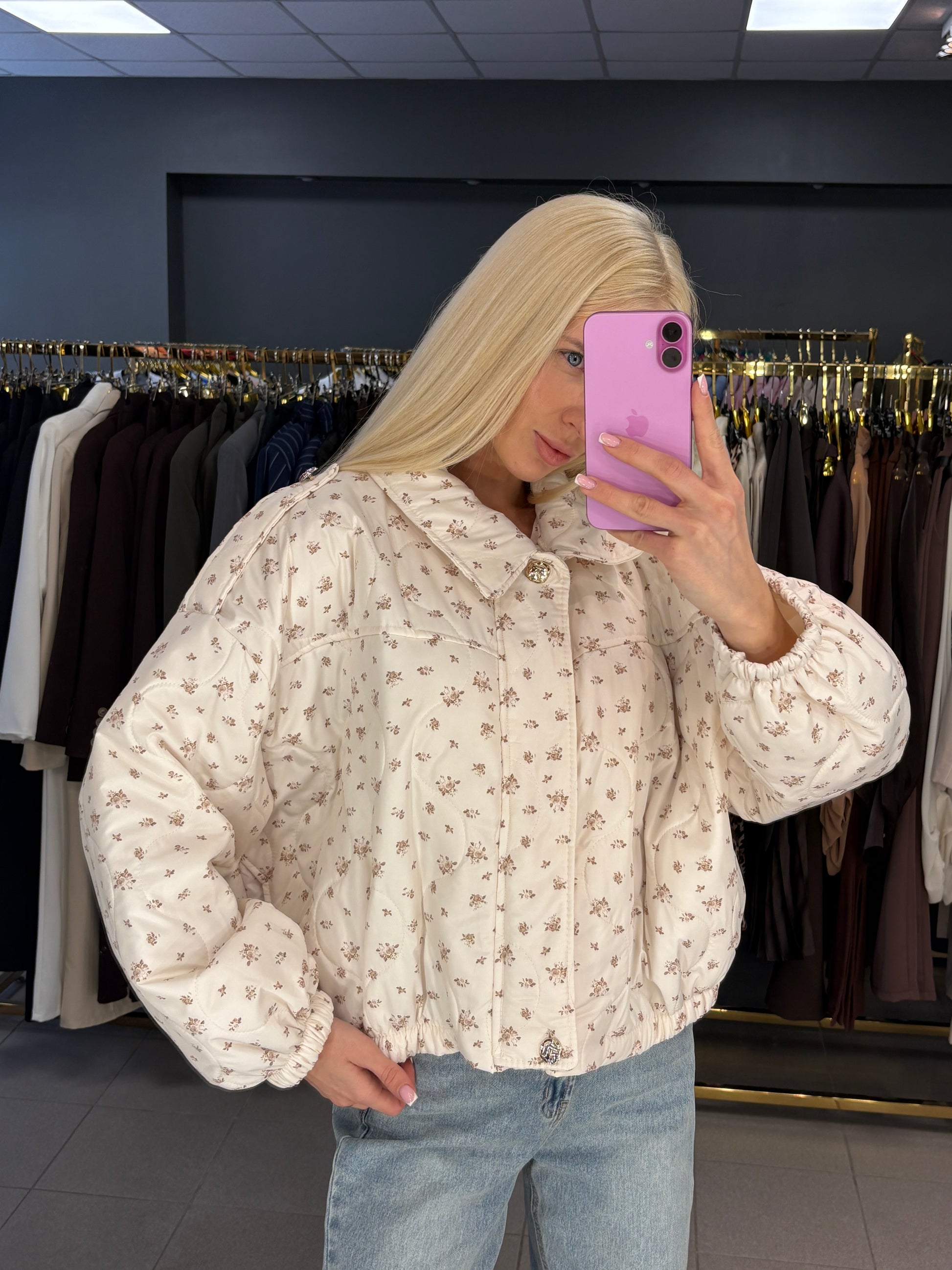Lengvo audinio striukė, turi kišenes. Vienas dydis, tinkamos nuo XS iki XL.