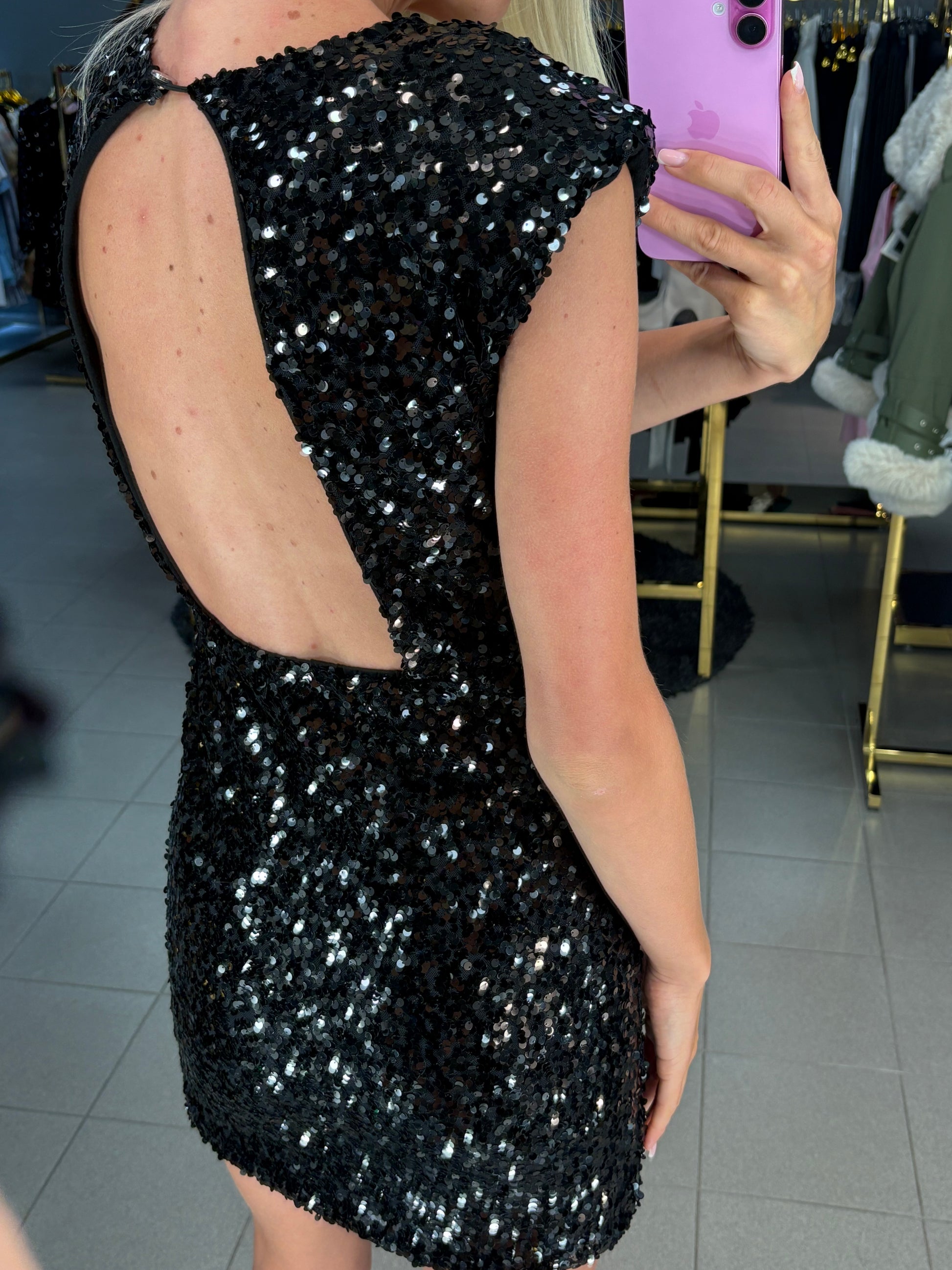 Atvira nugara, įdėti petukai. Tinkama XS/S dydžiui