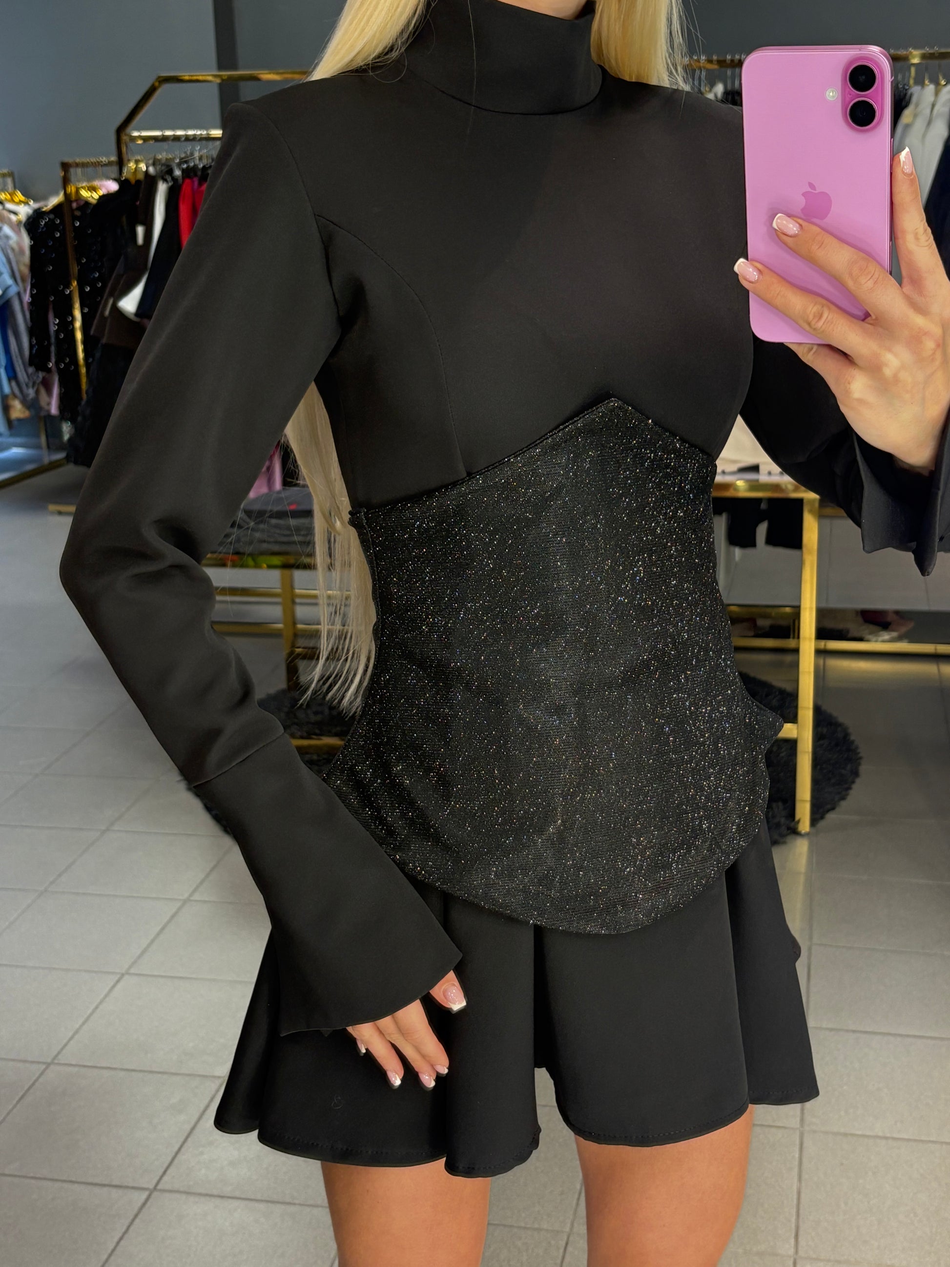Suknelė su blizgančiu korsetu