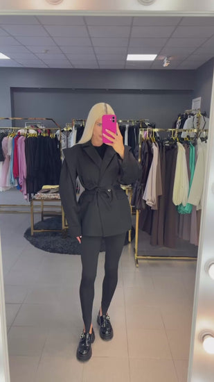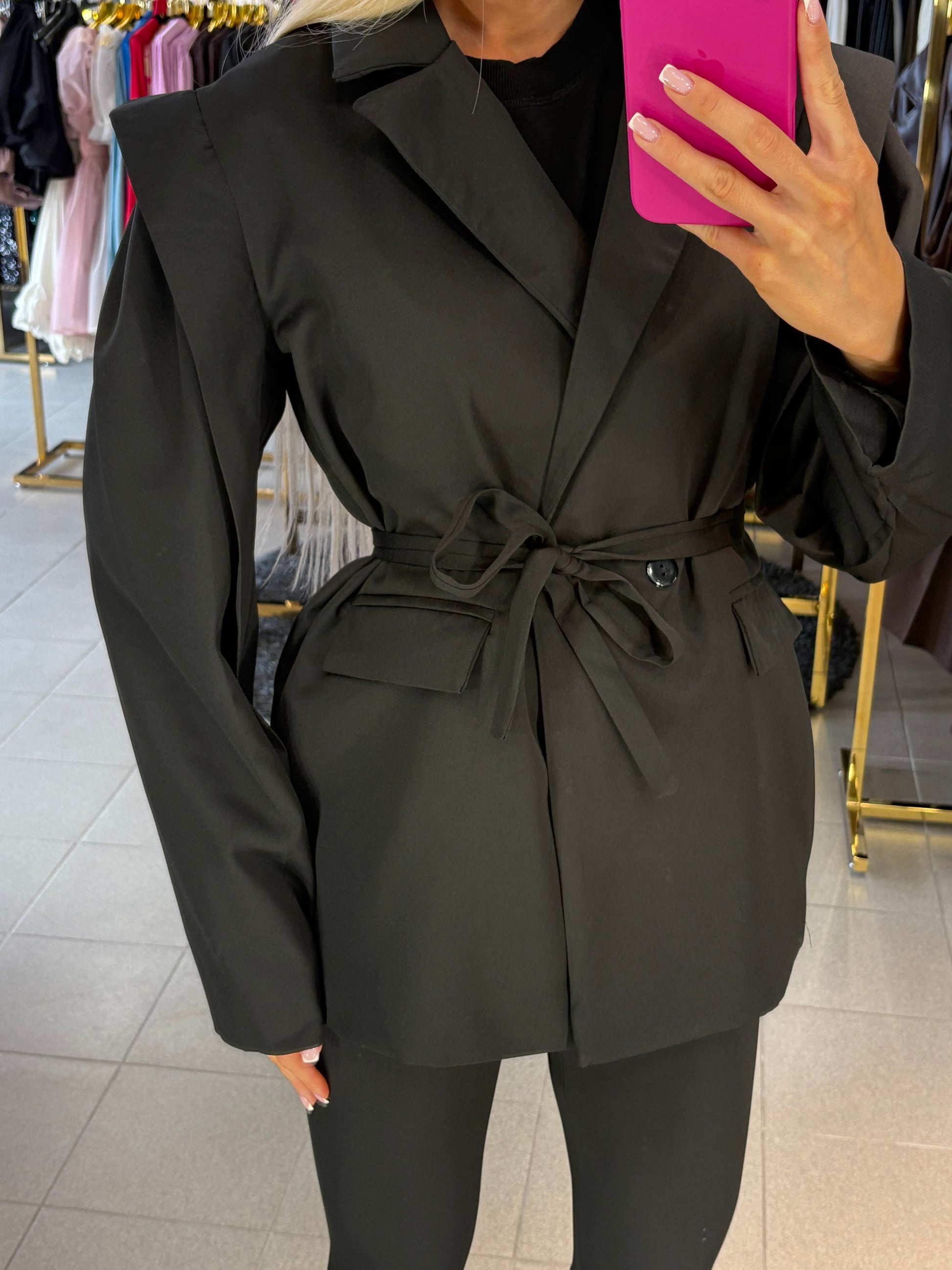Over size modelio švarkas su dirželiu. Tinkamas nuo XS iki L dydžio