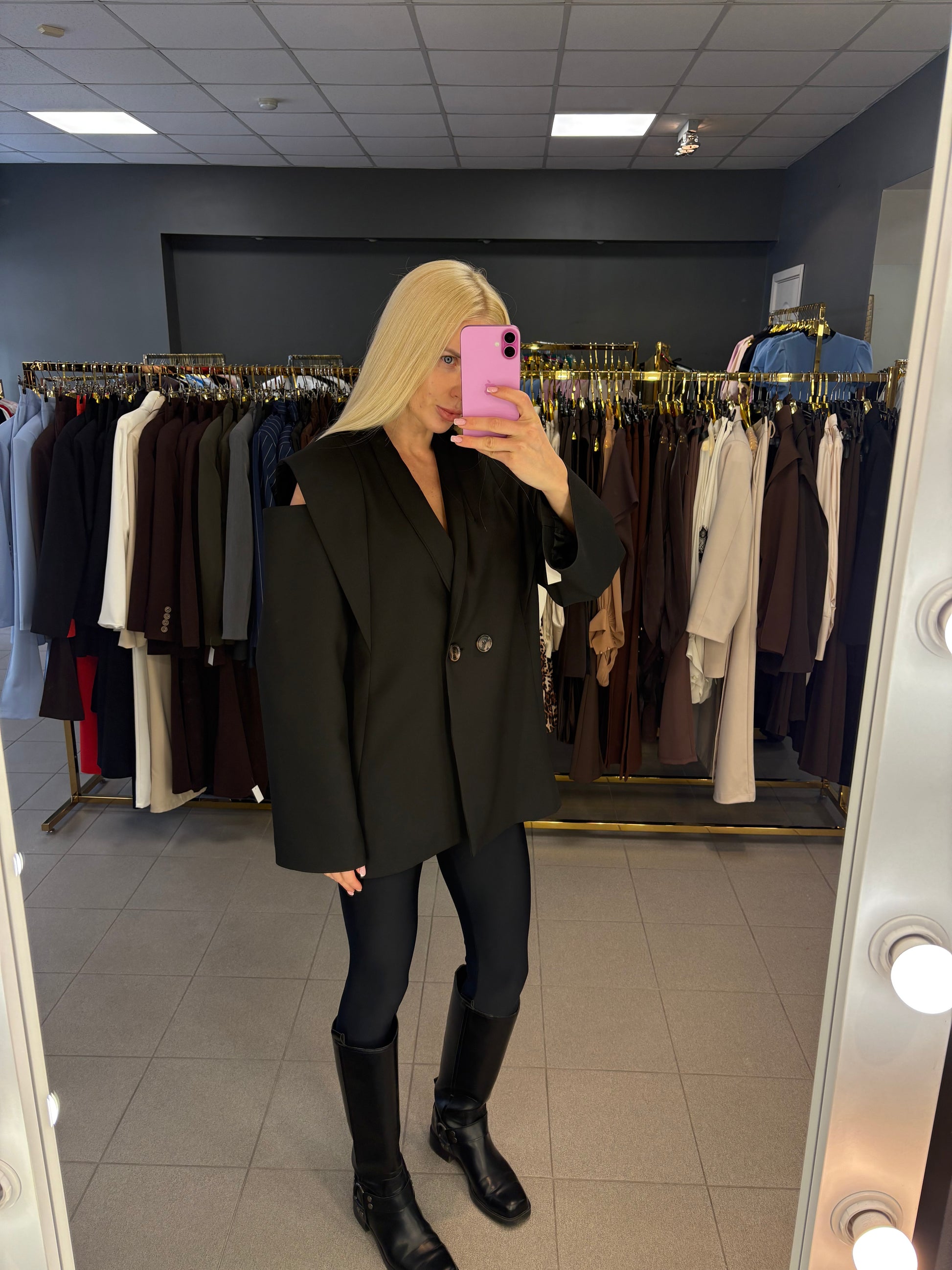 Išmatavimai: tarp pažastų 50cm, rankovės ilgis nuo kaklo siūlės 83cm, ilgis nuo pečių 78cm