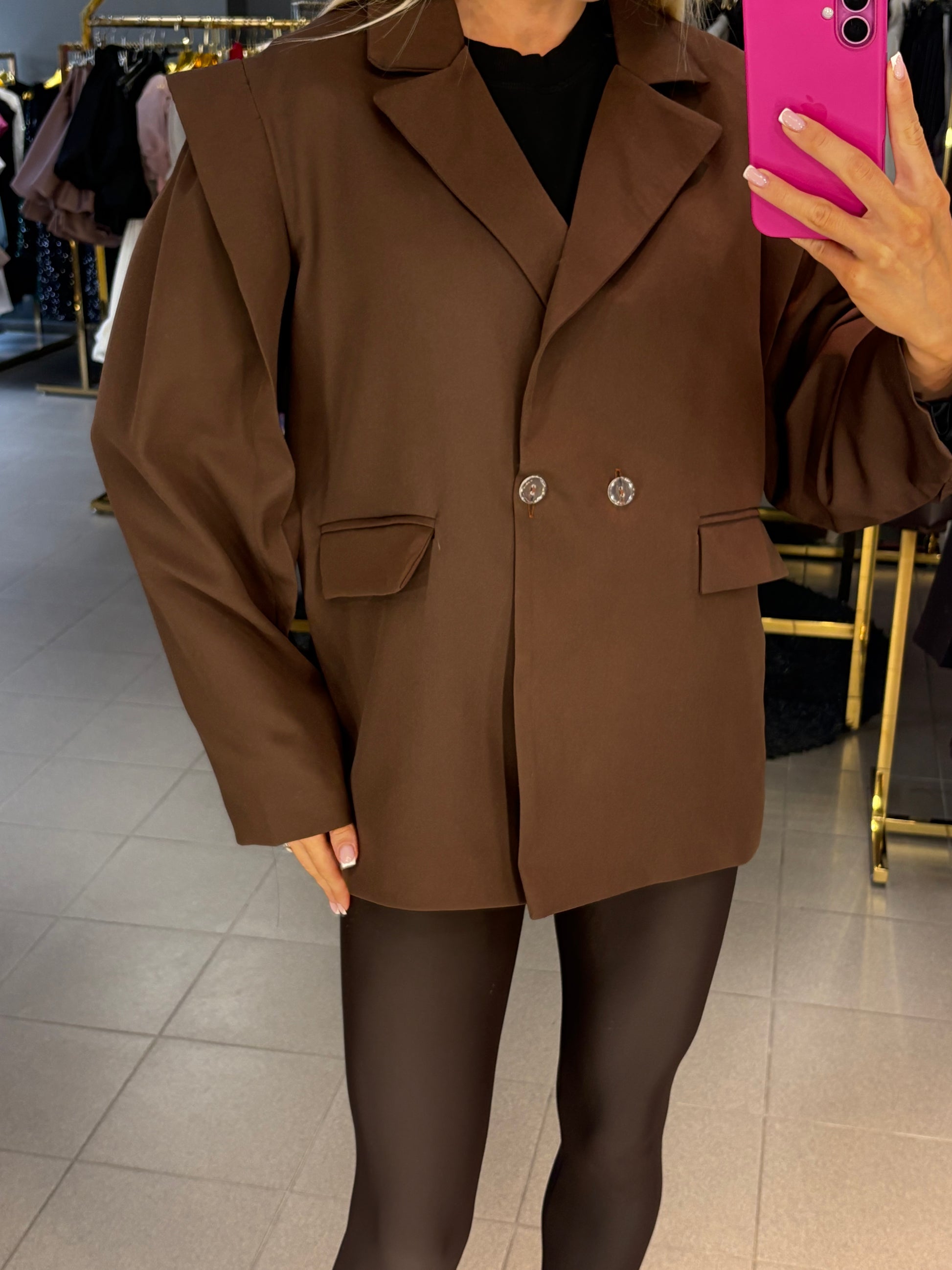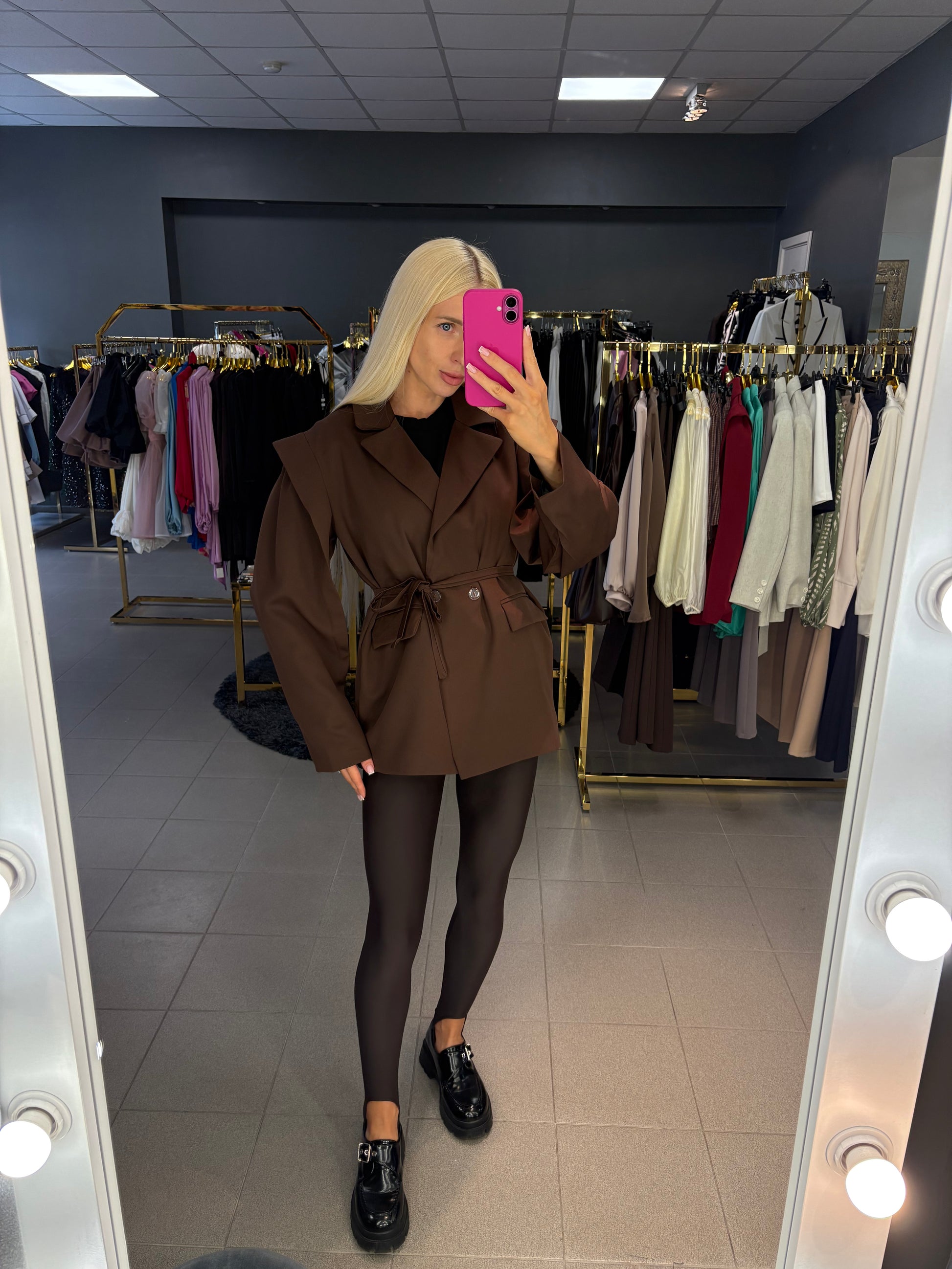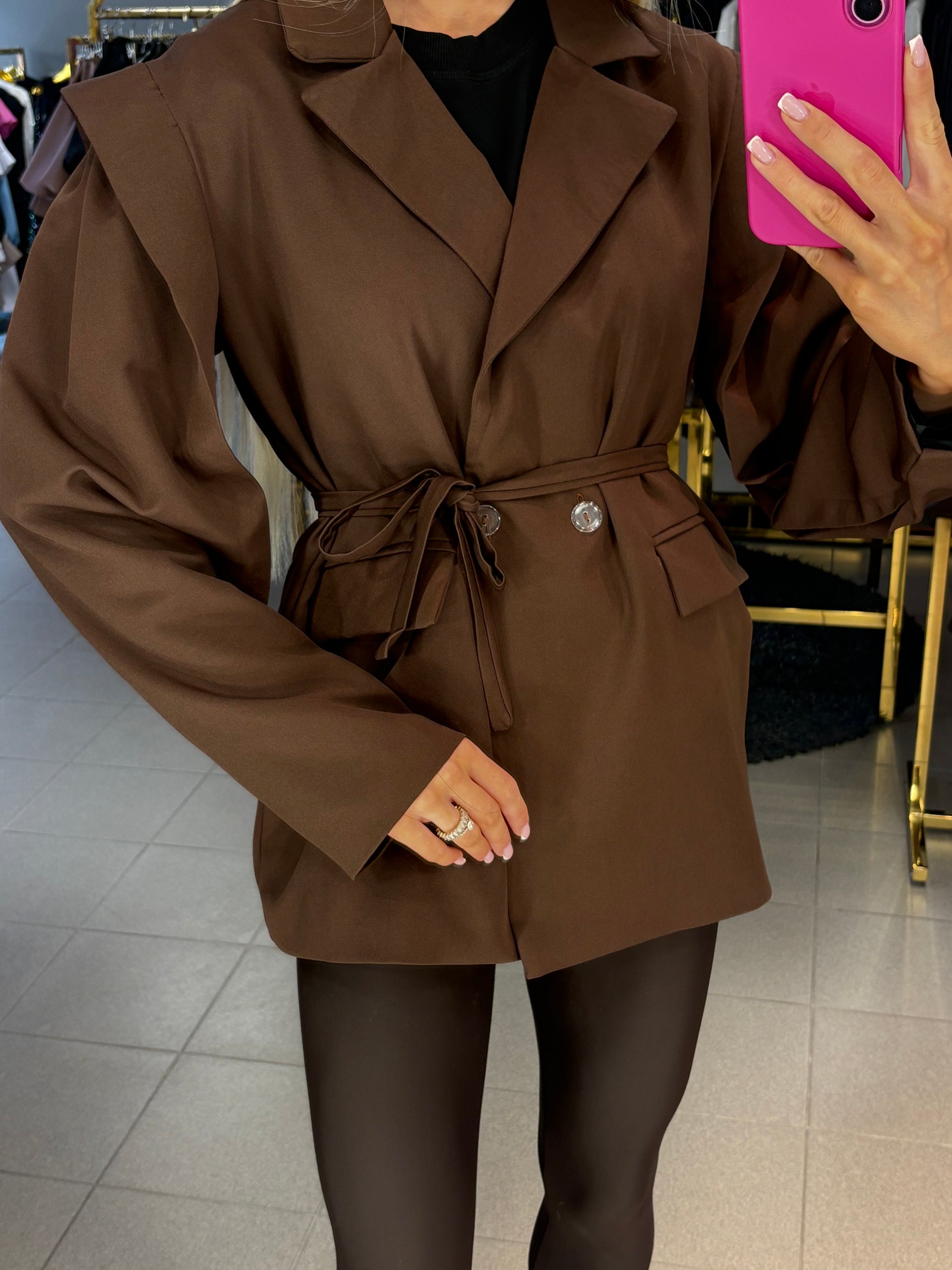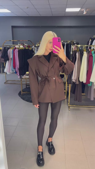 Over size modelio švarkas su dirželiu. Tinkamas nuo XS iki L dydžio