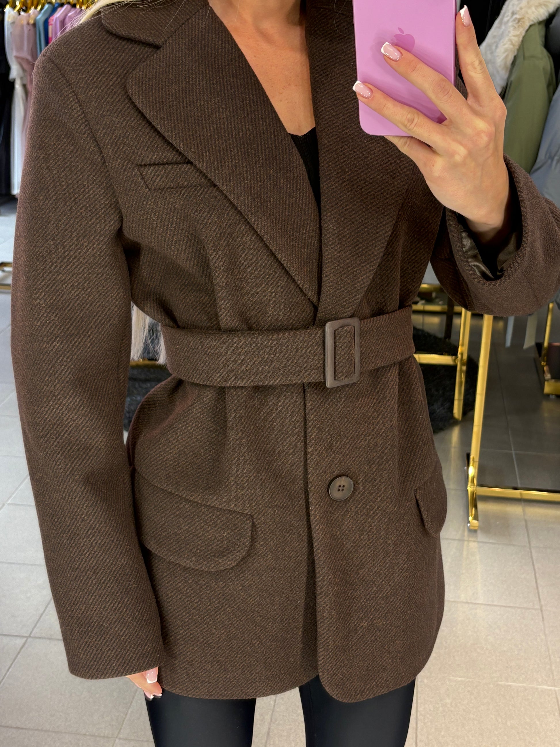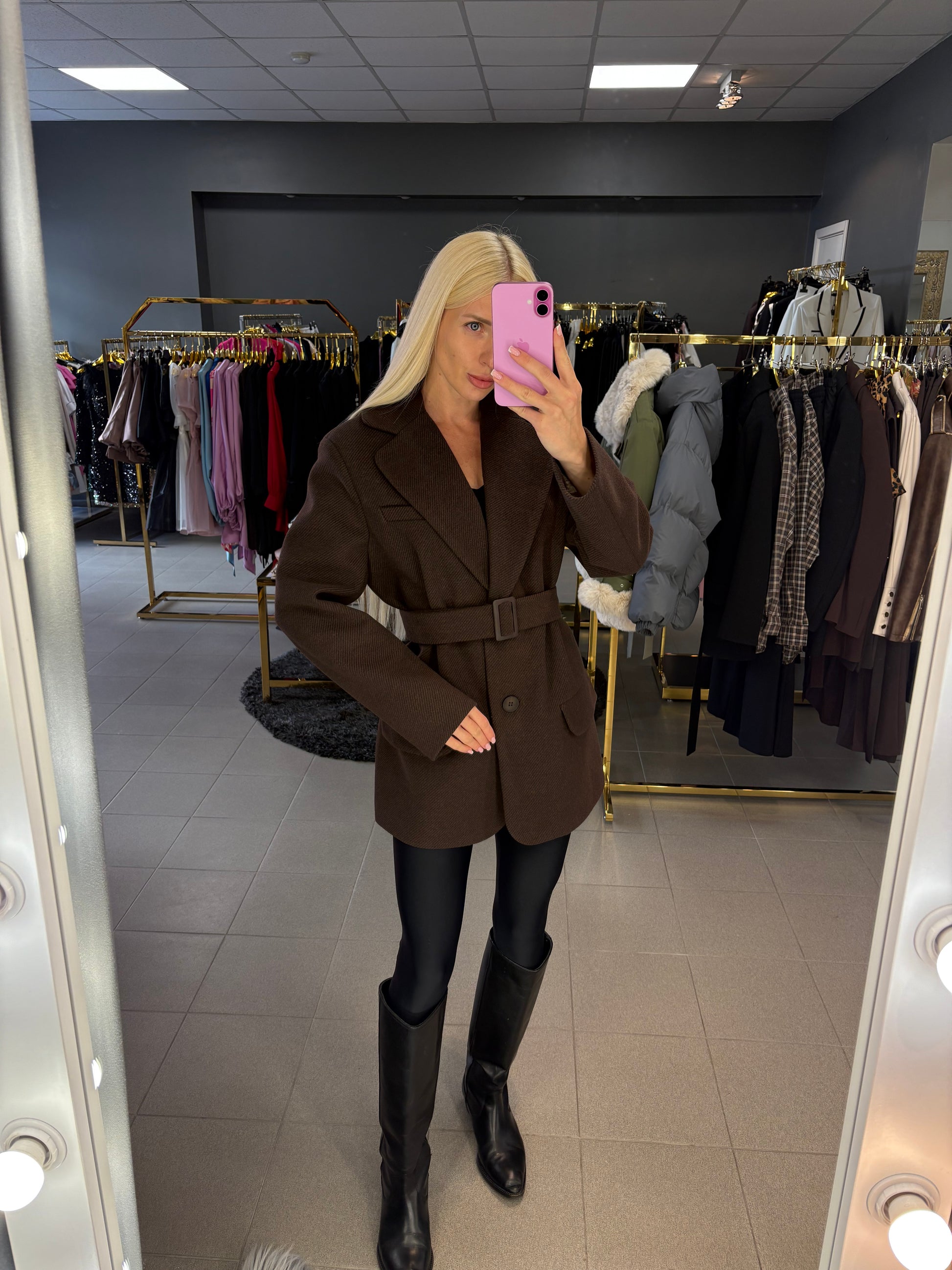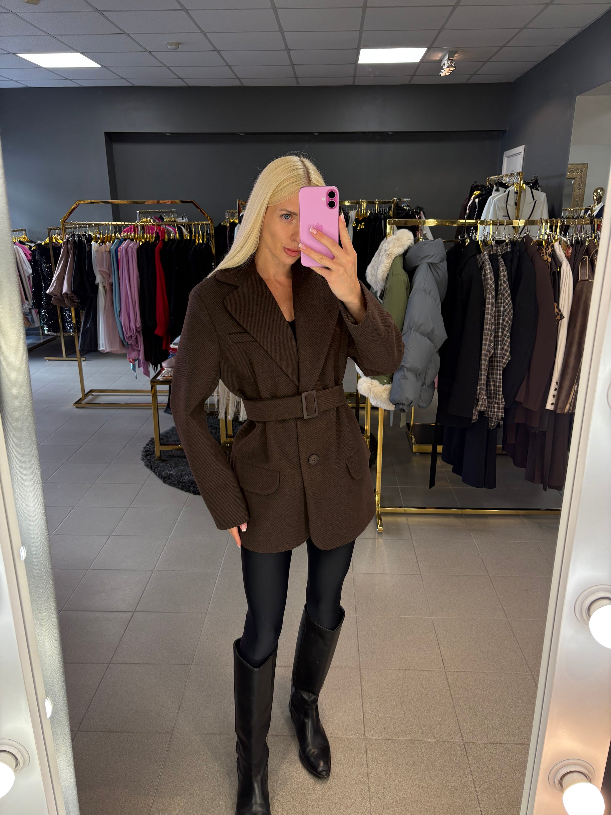 Paltinio audinio švarkas, su dirželiu. Tinkamas nuo XS iki L dydžio.