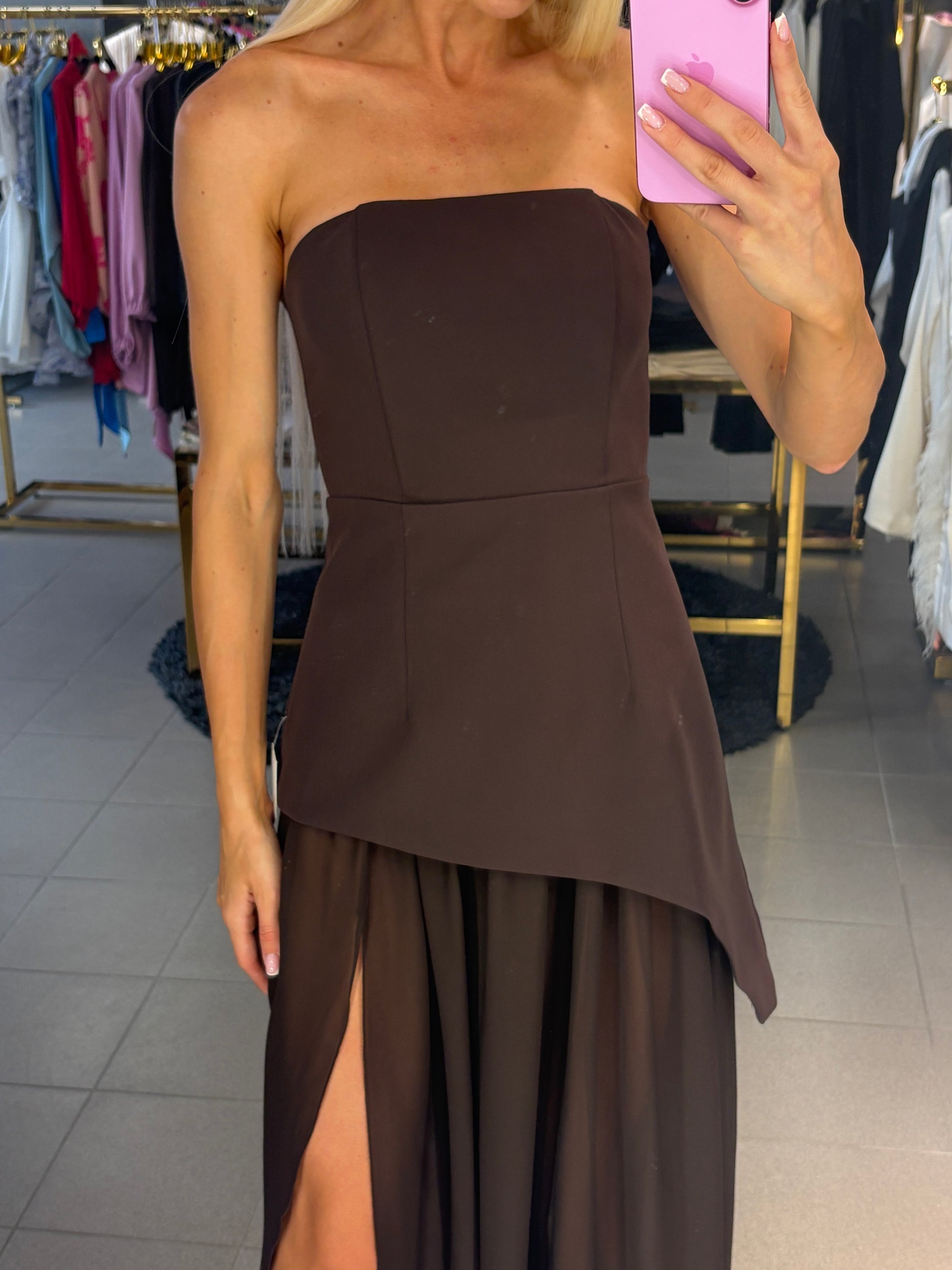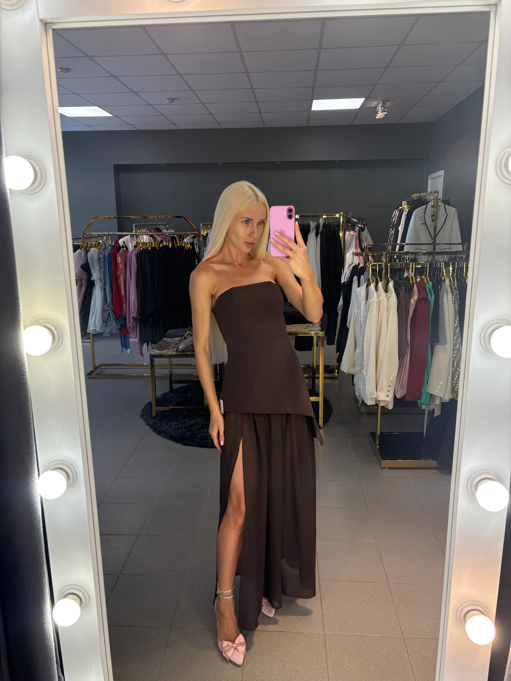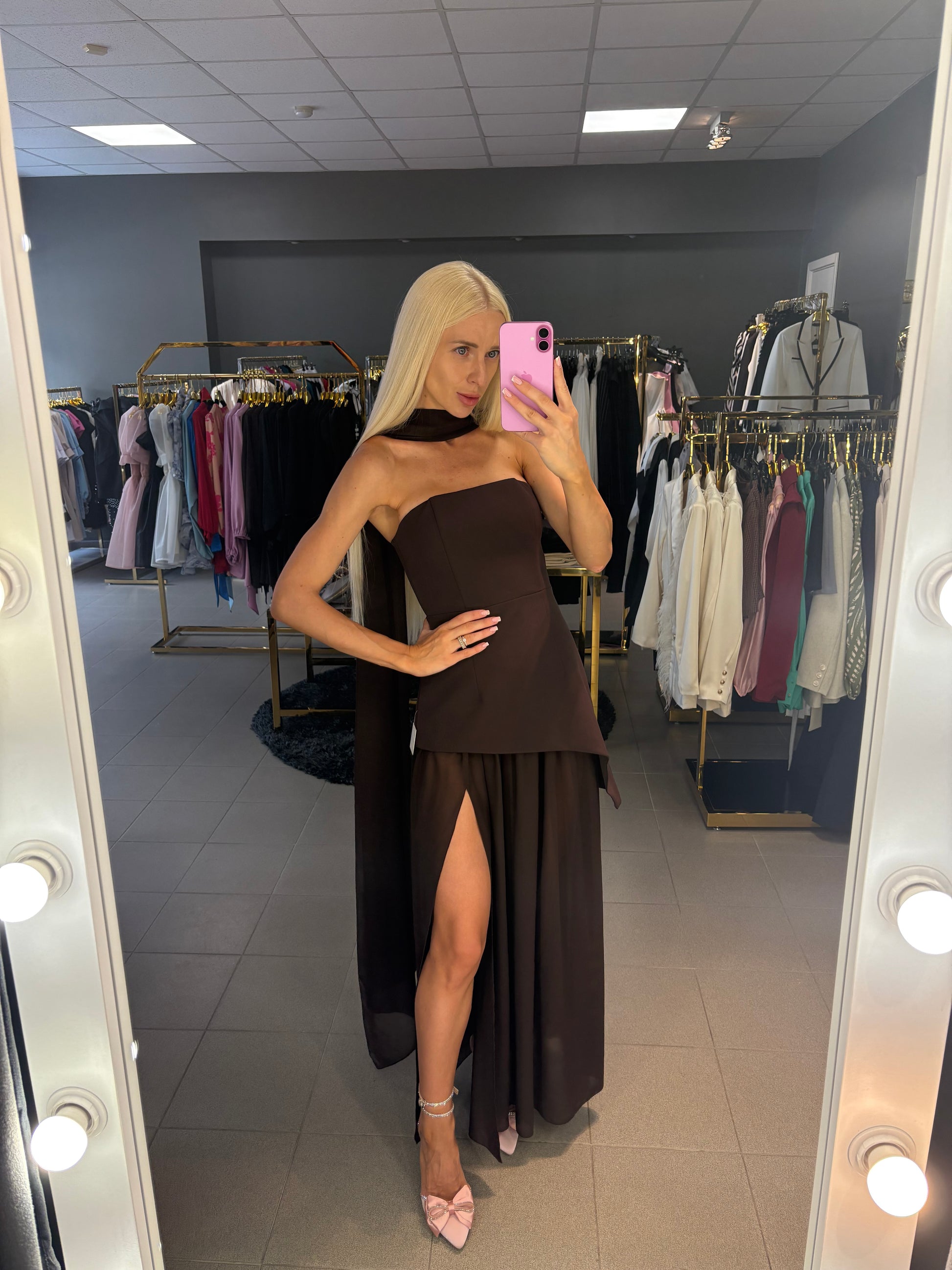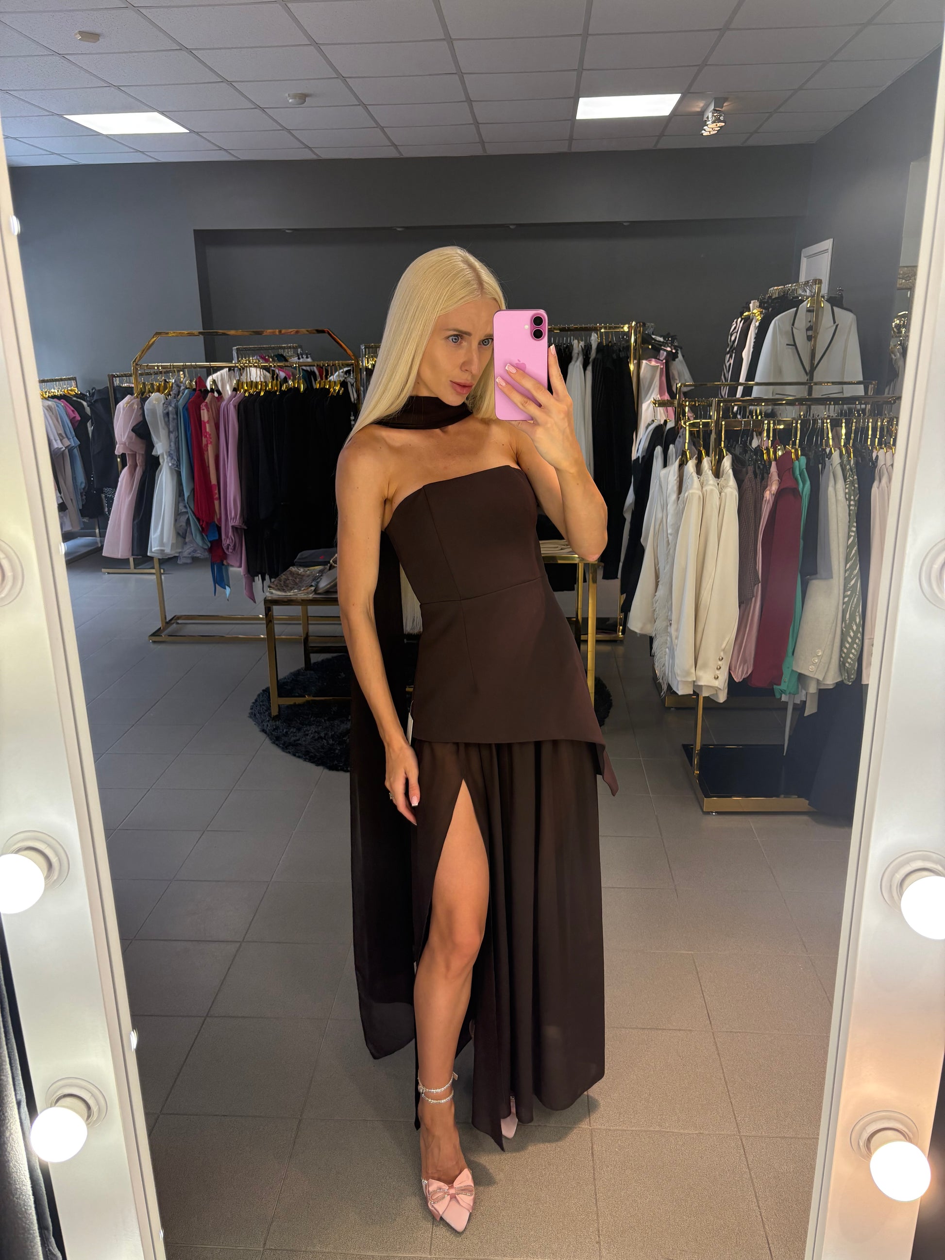 Šokolado spalvos. Korsetas - sijonas - skara