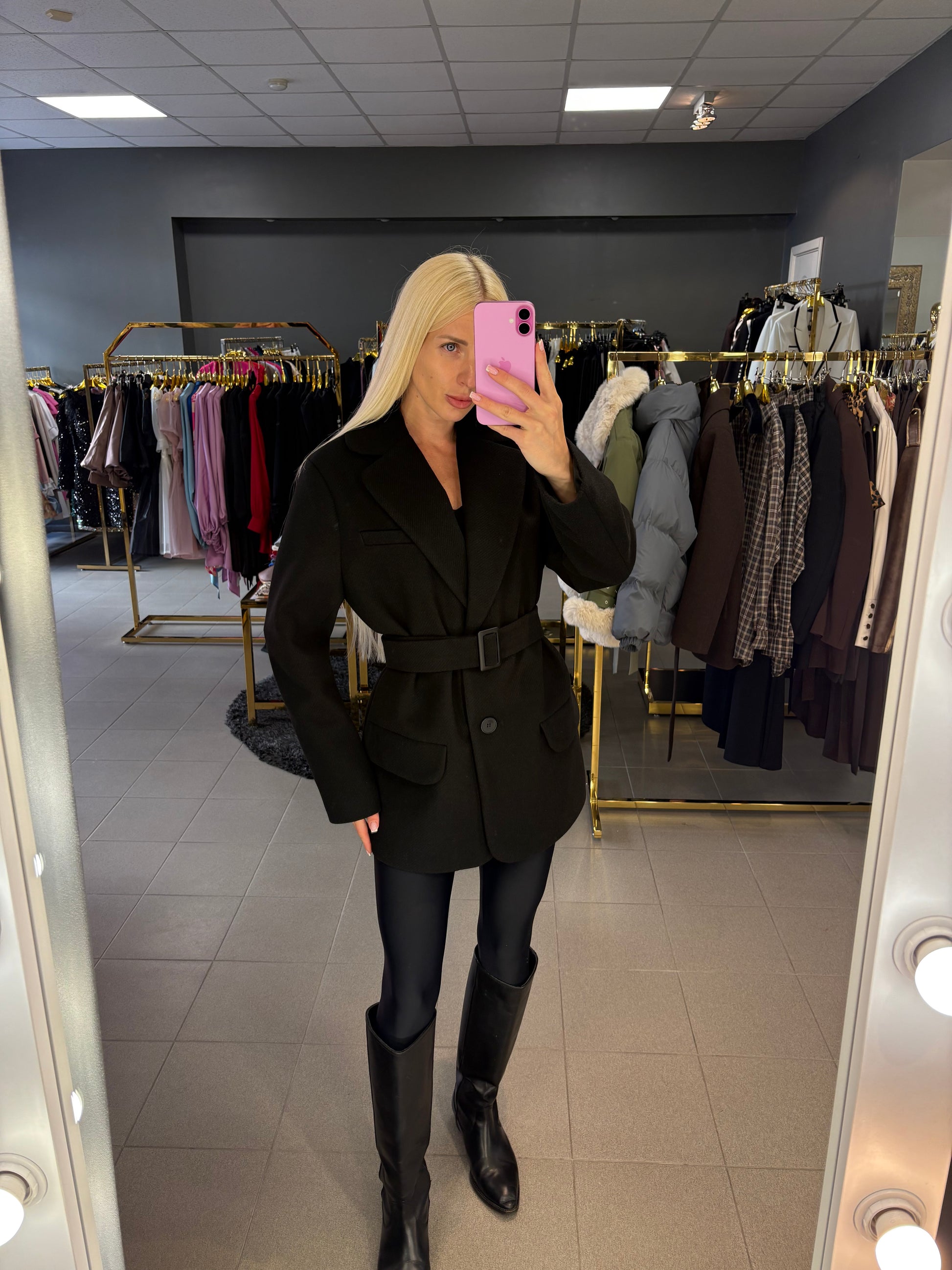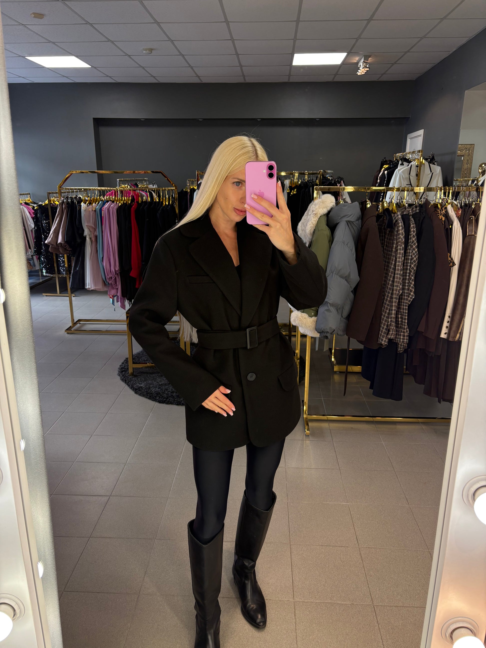 Paltinio audinio švarkas, su dirželiu. Tinkamas nuo XS iki L dydžio.